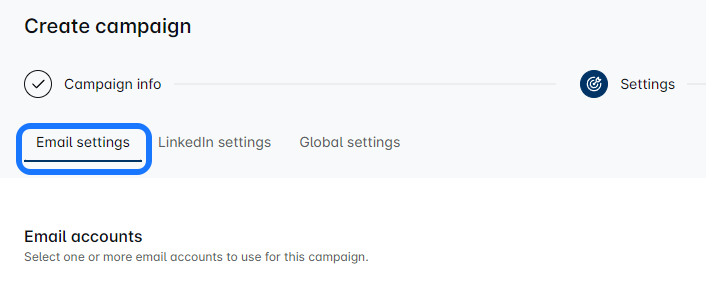 Once you pass through the initial Campaign Creation step, you will come to the 'Campaign Settings' page. Here lies the control panel of your campaign. Navigate and find the 'Email Settings' tab at the top.
