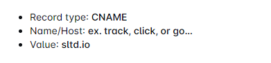 - Since we’re creating a subdomain, you need to use the prefix you’ve created (e.g., track, click, go, etc.) and paste it into Sizzling Digital under the Your subdomain field.